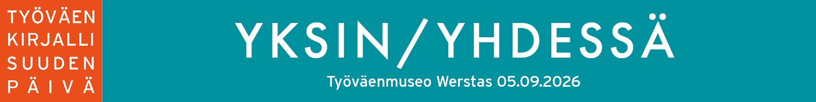 Työväenkirjallisuuden päivä järjestetään tänä vuonna Työväenmuseo Werstaan tiloissa lauantaina 5.9. klo 11.00–18.00 teemalla YKSIN/YHDESSÄ. Tapahtuman ohjelmarunko kootaan kevään 2026 aikana, ja ohjelma julkaistaan yleisölle kesäkuun alussa.